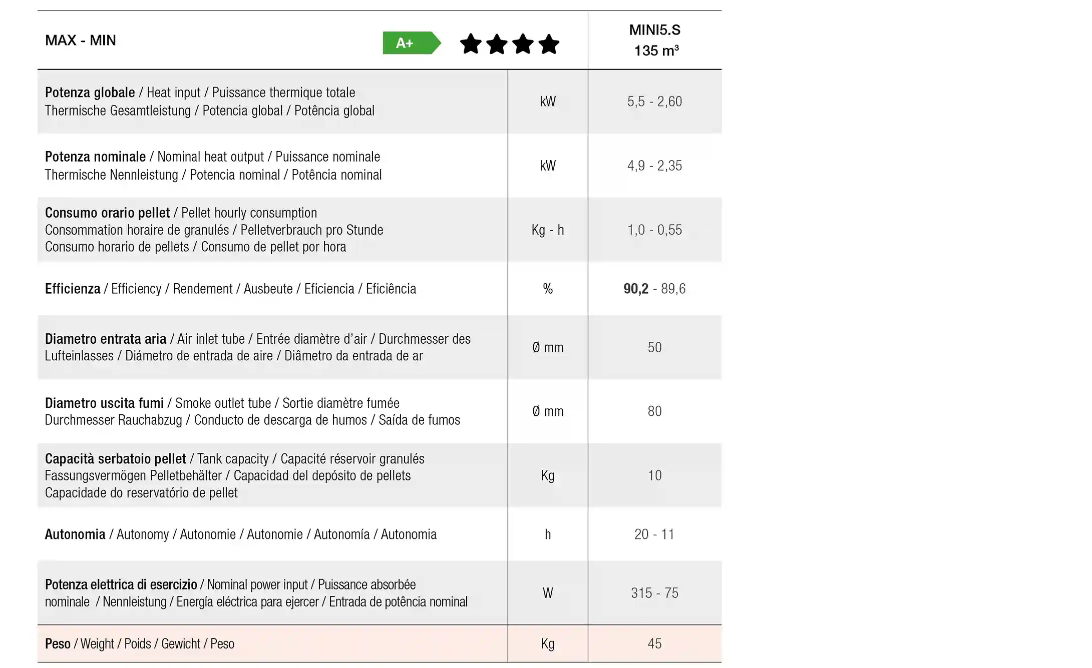 Das Model „Mini“ ist für alle Umgebungen geeignet und hält die ökologischen und energiesparenden Standars.