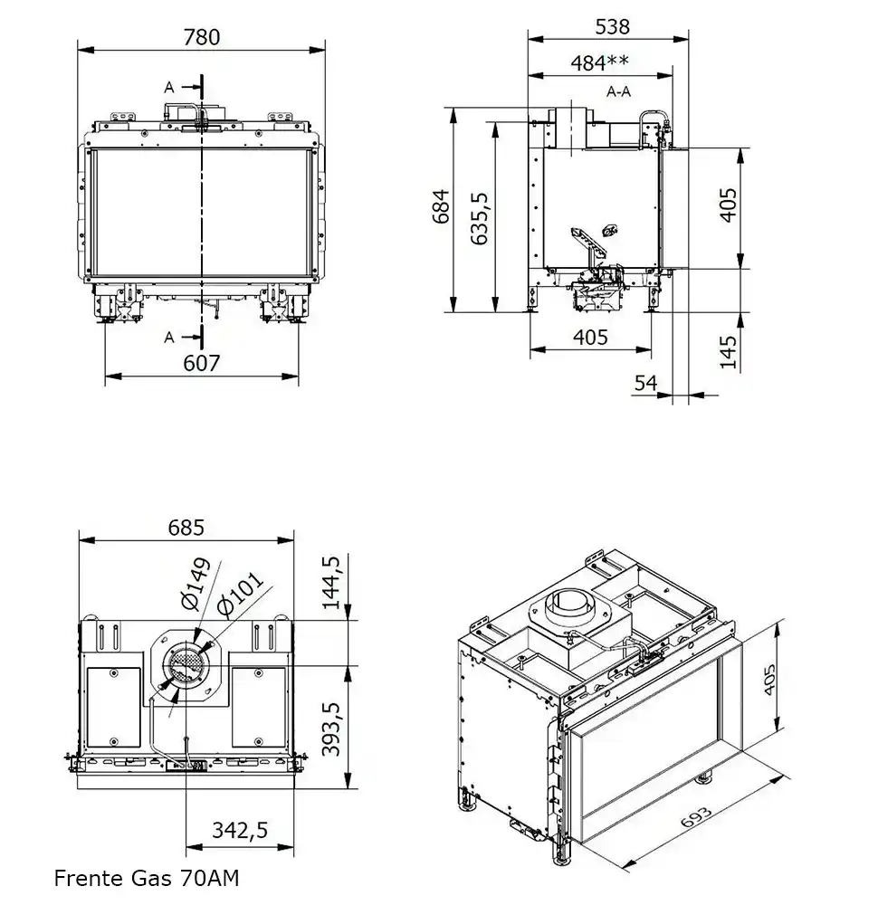 - Einbau-Gaskamin Zimmer Gas kamin 70 cm