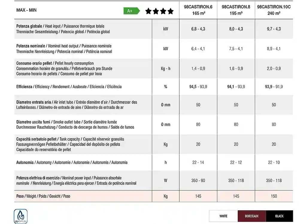 Biomass. Pellet fireplaces, inserts, and stoves – Biomass is a fuel with high calorific value and low CO2 emissions. A wide range of models and colors are available. Easy to use with a digital panel or remote control. Highly efficient and powerful, they distribute heat quickly thanks to their built-in turbines. Available in round, square, rectangular, and shallow-depth models, as well as designs with a circular ceramic glass front. Pellet stoves are generally used domestically to heat individual rooms and as supplemental heating.Redonda Pellet Burner Hermetica – Castiron Stove