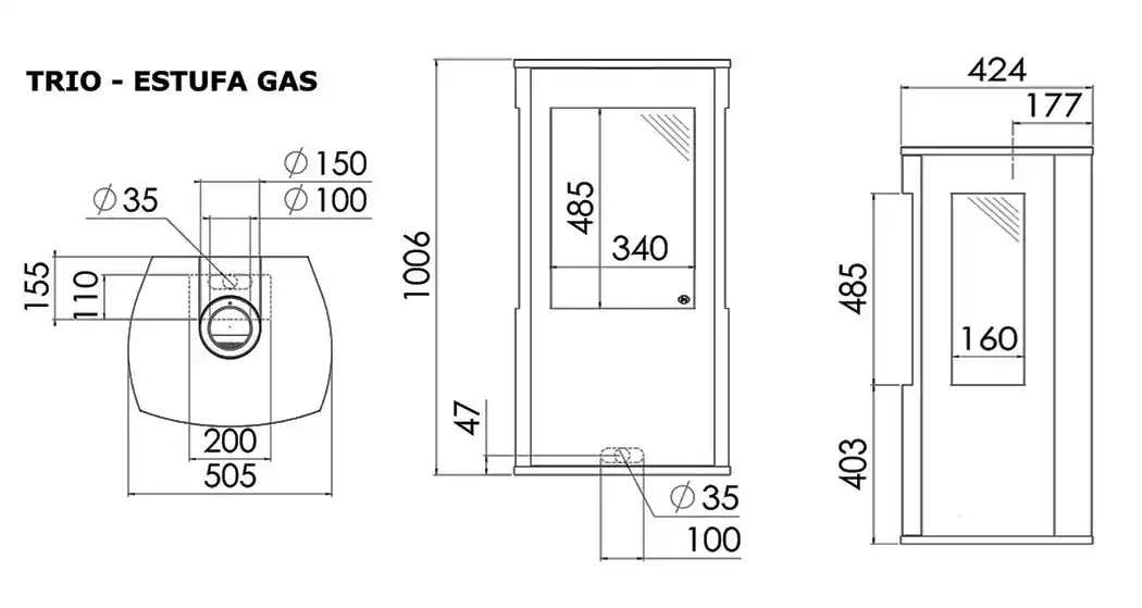 The stylish 3 sided gastove Trio is a freestanding, balanced flue model in archetypal anthracite finish with a striking, 3-sided log fire display that will produce a comforting radiance all around your living room. It is trouble-free and uncomplicated to install, runs on both natural gas and LPG and is correspondingly at home in country homes or hip city residences.