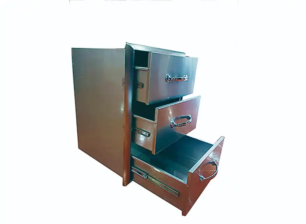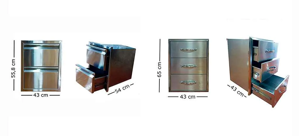 Accesorios barbacoas cajoneras inoxidable. Cajoneras de dos o tres tiradores, ideales para diseño de cocinas o barbacoas en jardines o terrazas.