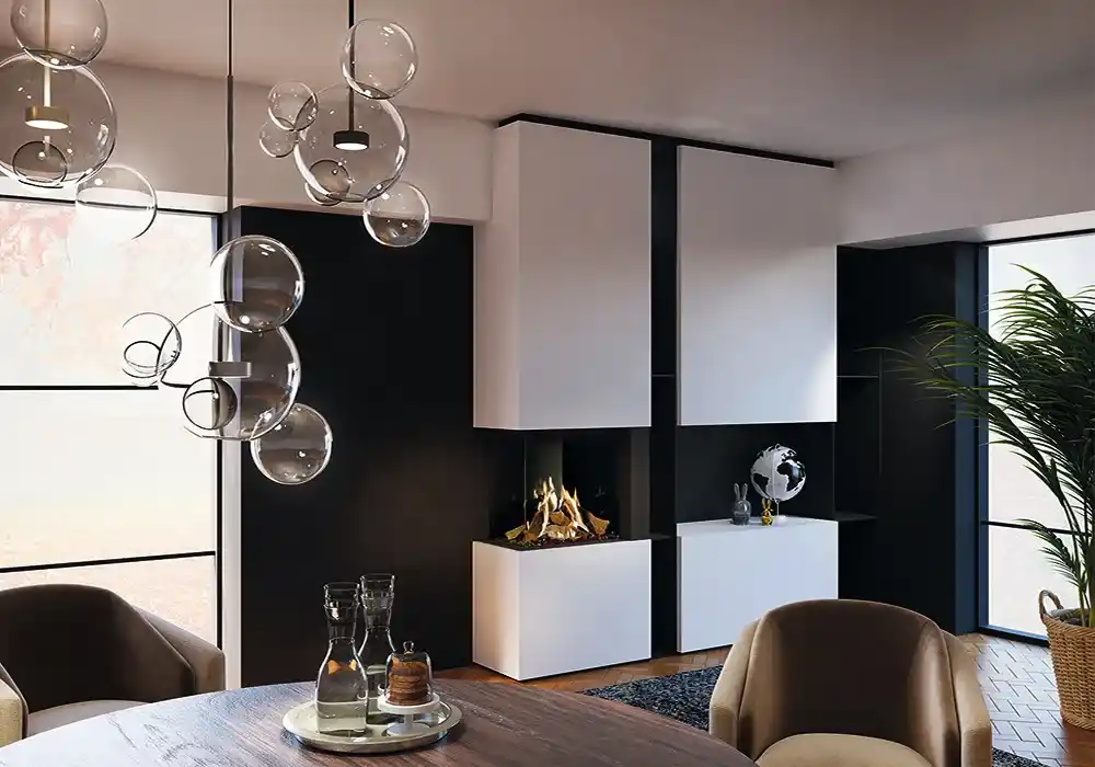 Chimenea Esquina 2 Caras, Ambiente, Calidez y Comodidad durante todo el año.