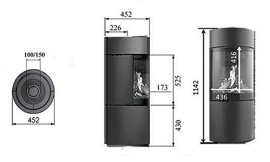 Esta preciosa estufa a 3 caras con un poder calorífico, de aproximadamente 4 kW. Es adecuada para estancias con buen aislamiento y espacios pequeños como una cocina, un salón o una extensión acristalada.