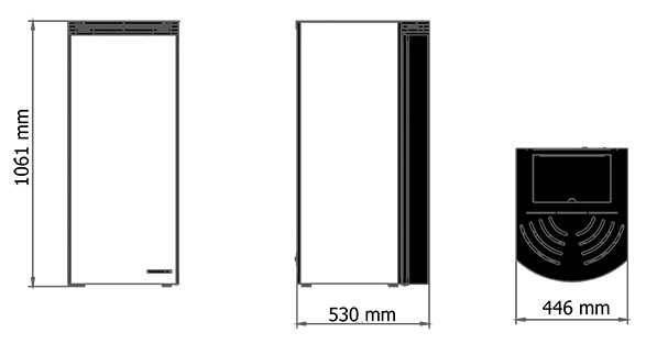 Estufa pellets frente redondeado de gran belleza con Frente Cristal Vitrocerámico de color negro – Además tiene un gran deposito para los pellets y un cenicero de fundición. Su sello distintivo son sus líneas verticales que se funden harmoniosamente en la estructura de la estufa, dándole un carácter único.