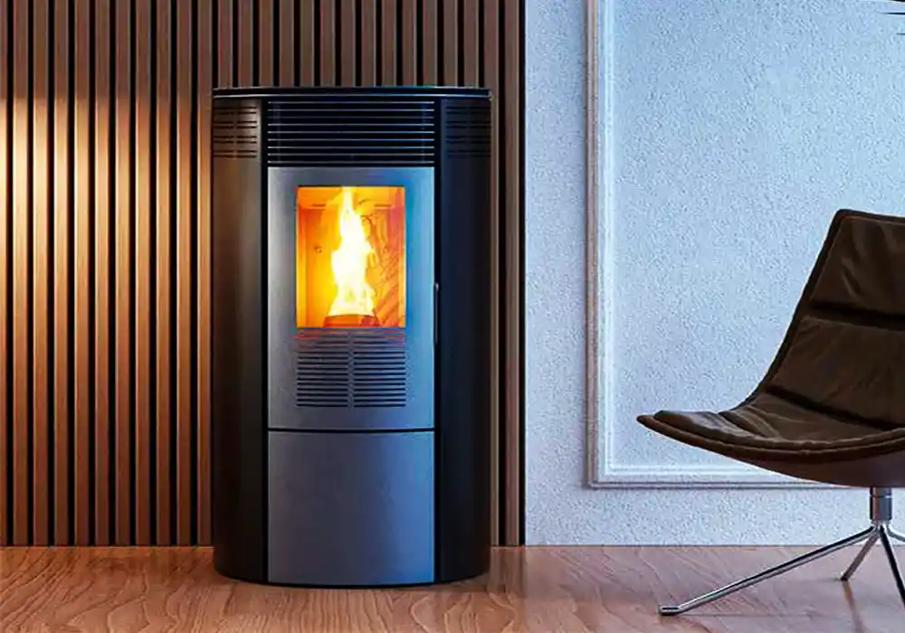 Mod-12-redonda pellet, estufa con una alta eficacia y adecuada para caldear espacios grandes.