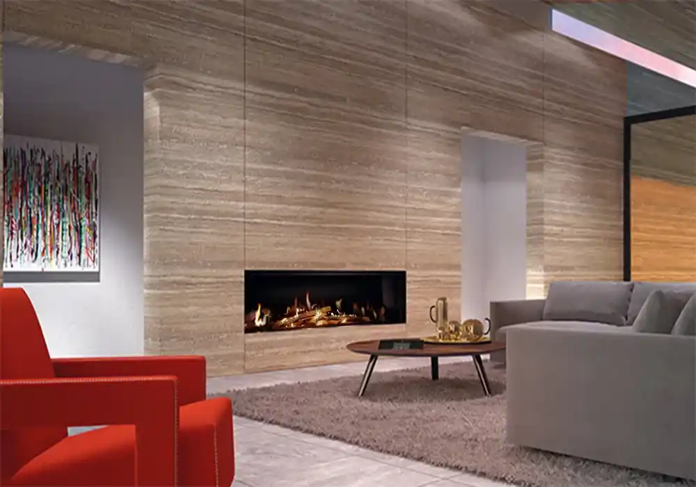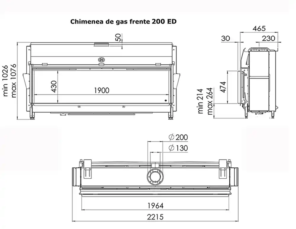 Panoramica Frente Gas 200ED, una excelente opción para quienes buscan el calor acogedor del fuego sin las complicaciones del mantenimiento tradicional. Con un ancho de 200 cm, este modelo se presenta como una pieza central impresionante en cualquier sala de estar, combinando funcionalidad y estética.