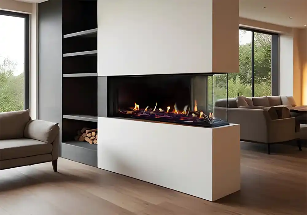 Chimenea bioetanol separador 1400 crea Ambiente y calidez fácil y sin humos para disfrutar de dos ambientes cálidos sin humos ni complicaciones.